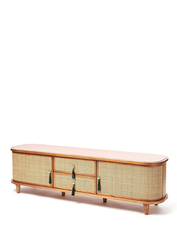 PRODUKTDETAILS : Die beste Möglichkeit, Ihrem Wohnraum Tiefe und Funktionalität zu verleihen, ist die Wahl von Produkten mit natürlicher Textur. Dies ist ein atemberaubendes Stück und die perfekte Mischung aus Retro- und zeitgenössischen Möbeln. Das TV-Möbel aus Holz von Francesco Hazeranlı ist ein stilvoller Aufbewahrungsort für Ihr Zuhause.