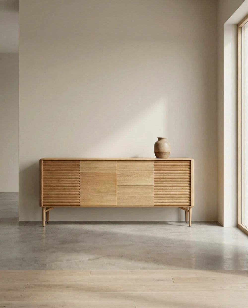 PRODUKTDETAILS : Die beste Möglichkeit, Ihrem Wohnraum Tiefe und Funktionalität zu verleihen, ist die Wahl von Produkten mit natürlicher Textur. Dies ist ein atemberaubendes Stück und die perfekte Mischung aus Retro- und zeitgenössischen Möbeln. Die Manilva-Holzkonsole ist ein stilvoller Aufbewahrungsort für Ihr Zuhause.