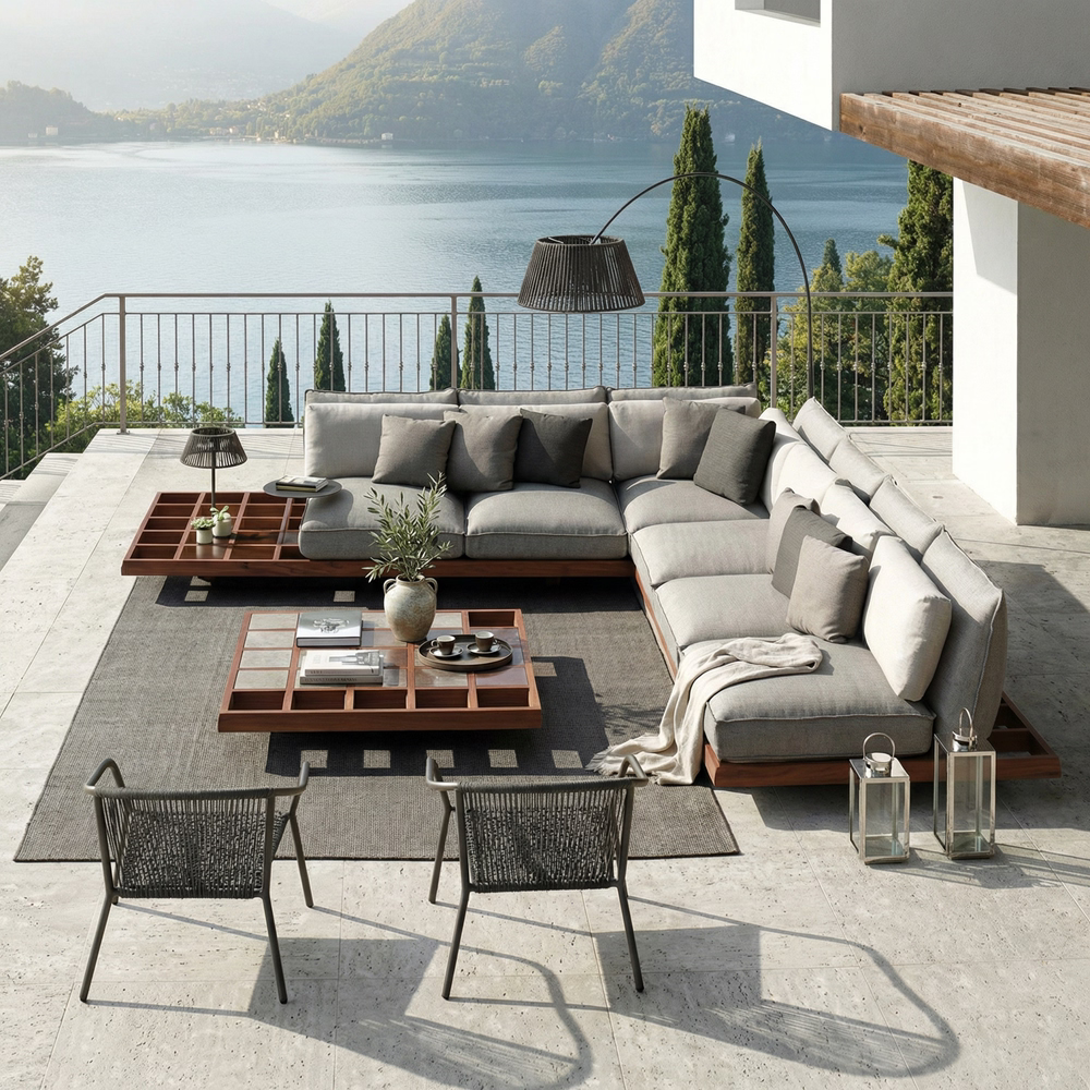 PRODUKTDETAIL : Stilvoll und modern, der solide Grill ist die Grundlage eines zeitlosen Outdoor-Sofas. Der massive Grill wirkt schlanker und ist weiter in 25 x 25 cm große Bereiche unterteilt. Die Beine wirken schlanker und verleihen dem Sofa einen schwebenden Effekt.