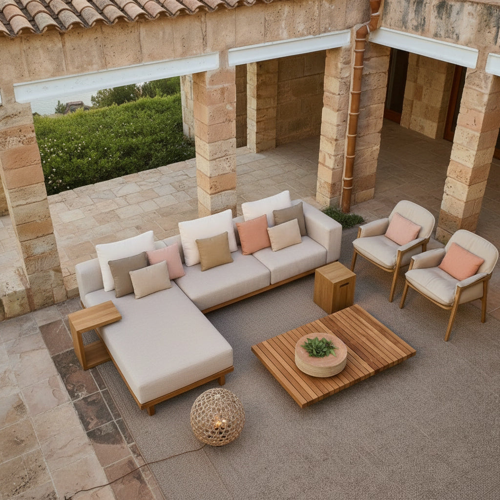 - Die Gartensitzgruppe Suwis Solid ist für den Einsatz im Freien konzipiert.