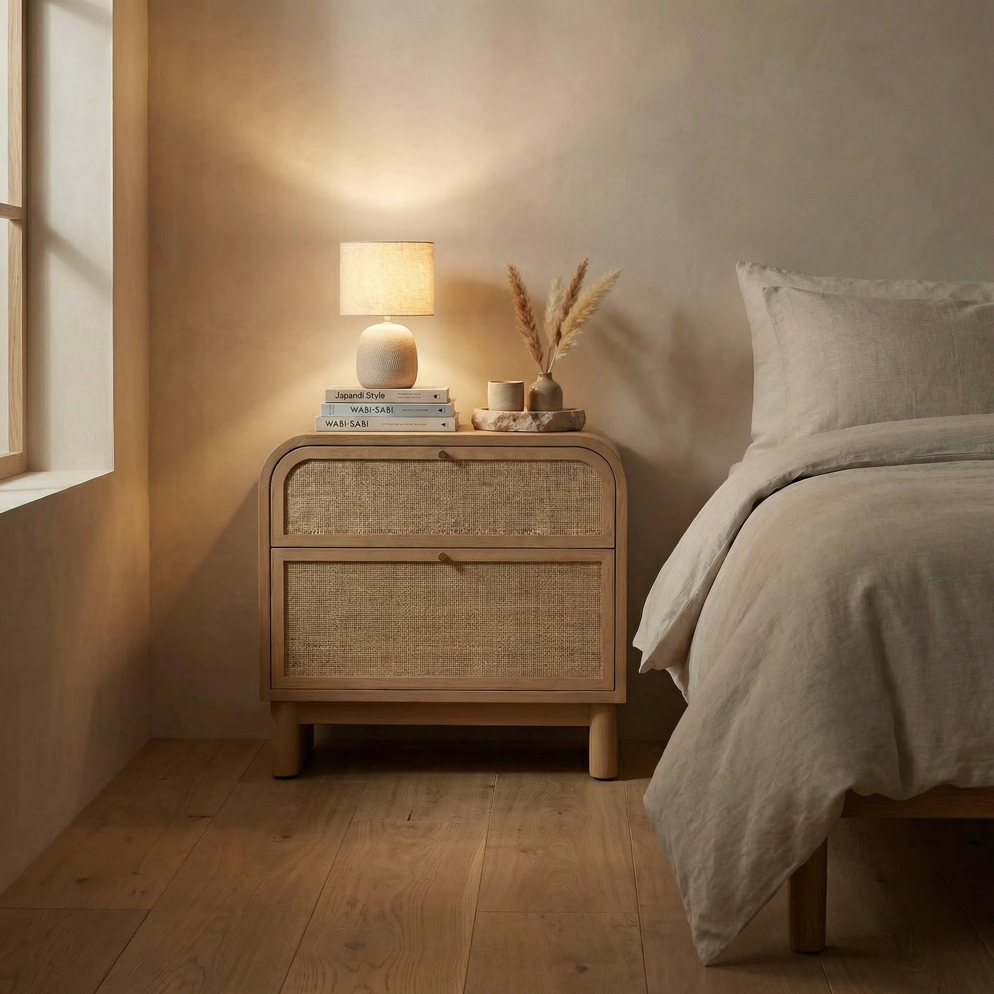 PRODUCT DETAIL : The best way to add depth and function to your living space is to choose products with natural texture. This striking piece is the perfect blend of retro and contemporary furniture. Airon Hazeranlı Wooden Nightstand will be a stylish storage space for your home.