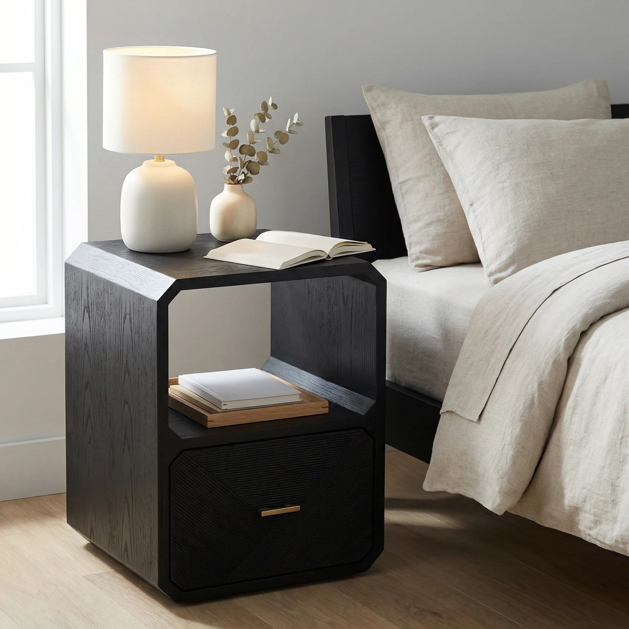 PRODUCT DETAIL : The best way to add depth and function to your living space is to choose products with natural texture. This striking piece is the perfect blend of retro and contemporary furniture. Gabriella Wooden Nightstand will be a stylish storage space for your home.