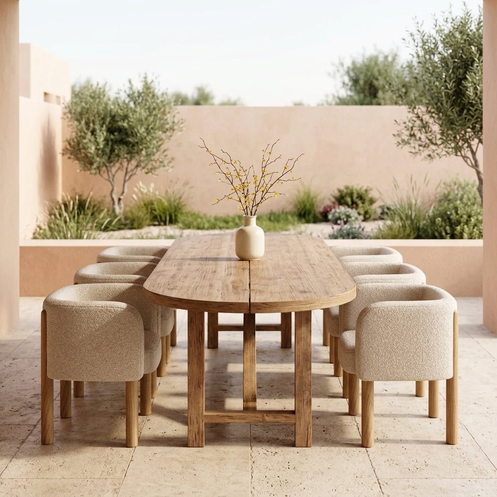 PRODUCT DETAIL : Sveis wooden garden table and chair set attracts attention with the most beautiful tone of wood. This set, which is used in poolside and similar open areas, is produced on order. This product, which becomes stylish with its wooden table and legs, adds color to stylish table and chair combinations. This set, which is one of the simplest models of the Sveis series, allows the table and chairs to be used harmoniously in outdoor areas. It will not be difficult to create stylish concepts with Sveis sets, which are an ideal choice for table and chair concepts. The product is priced for 1 table and 6 chairs.